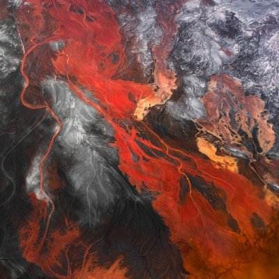 Crimson Realm: Abstract Images of Tailings Lakes